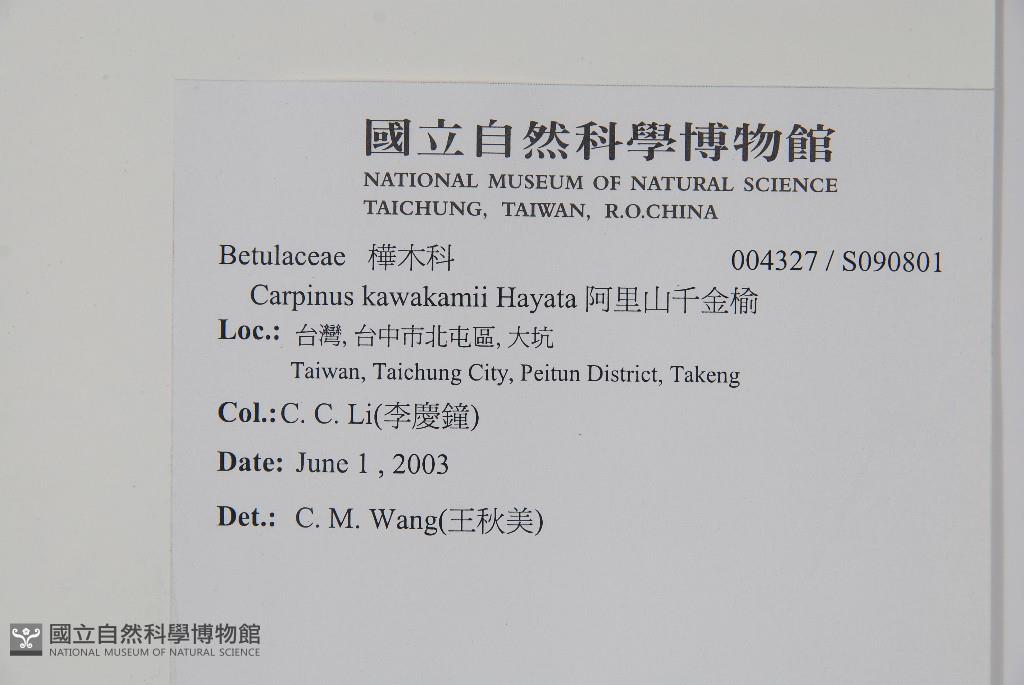 Scientific Name: Carpinus kawakamii Hayata