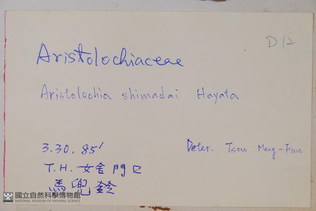 Scientific Name: Aristolochia shimadai Hayata