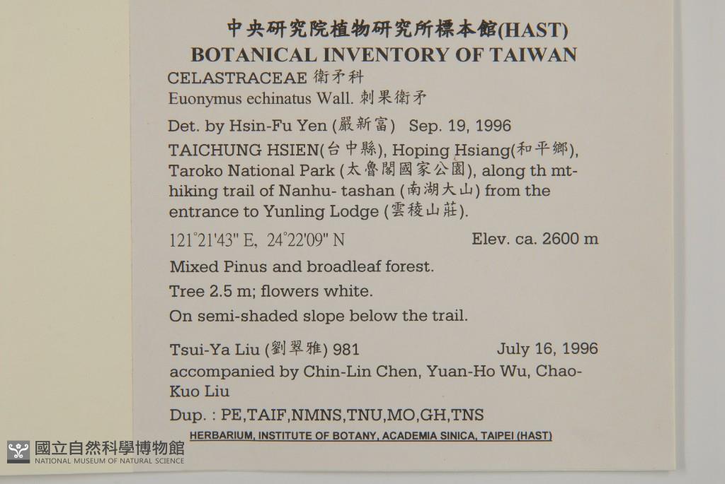 Collector:Tsui-Ya Liu(劉翠雅), Chih-Lin Chen, Yuan-Ho Wu, Chao-Kuo Liu