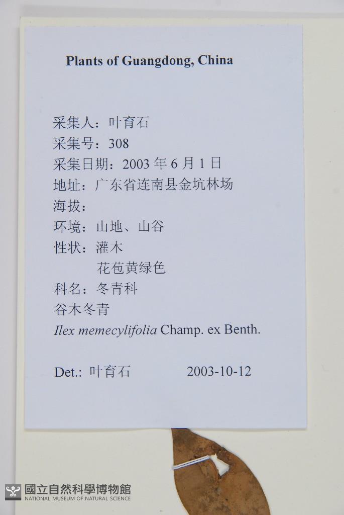 Scientific Name: Ilex memecylifolia Champ. ex Benth.