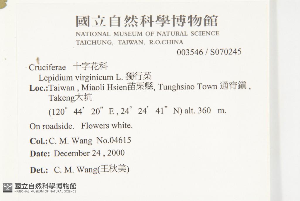 Scientific Name: Lepidium virginicum L.