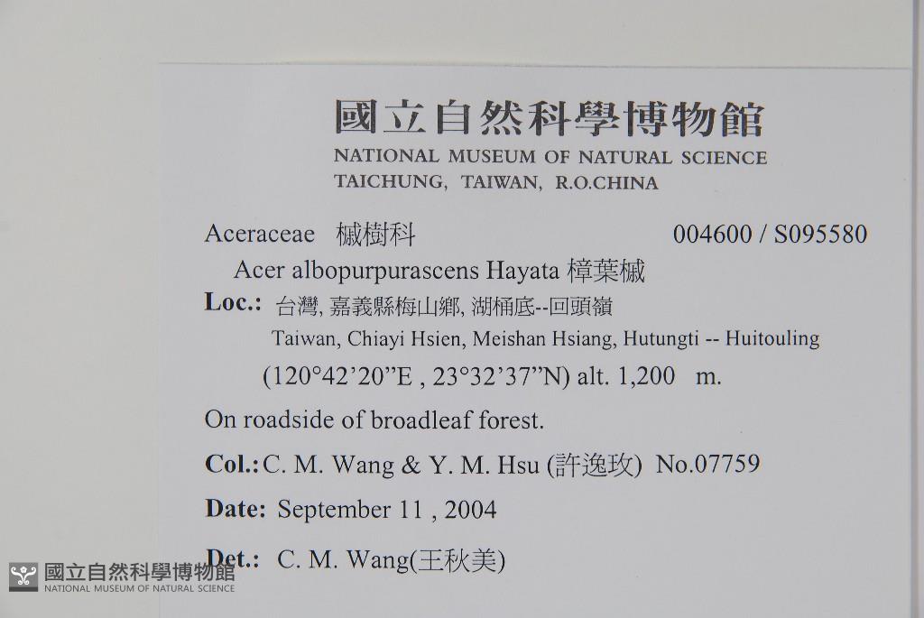 Scientific Name: Acer albopurpurascens Hayata