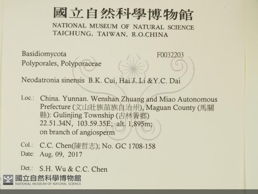 Neodatronia sinensis B.K. Cui, Hai J. Li &Y.C. Dai