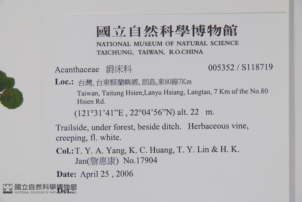 Collector:T. Y. A. Yang, K. C. Huang, T. Y. Lin & H. K. Jan(詹惠康)