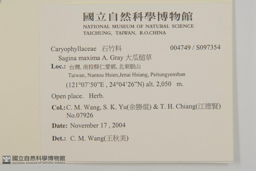 Collector:Chiu-Mei Wang (王秋美), Sheng-Kun Yu (余勝焜), & Te-Hsien Chiang (江德賢)