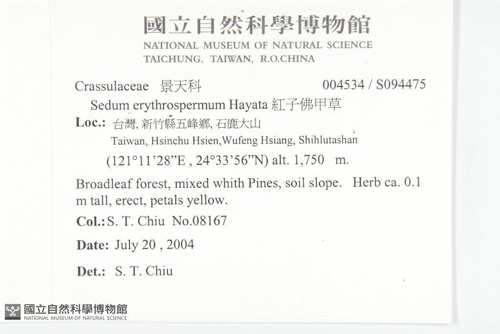 Scientific Name: Sedum erythrospermum Hayata