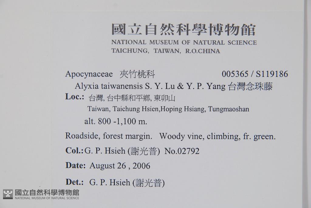 Scientific Name: Alyxia taiwanensis S. Y. Lu & Y. P. Yang