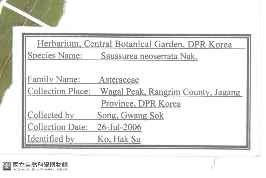 Scientific Name: Saussurea neoserrata Nakai.