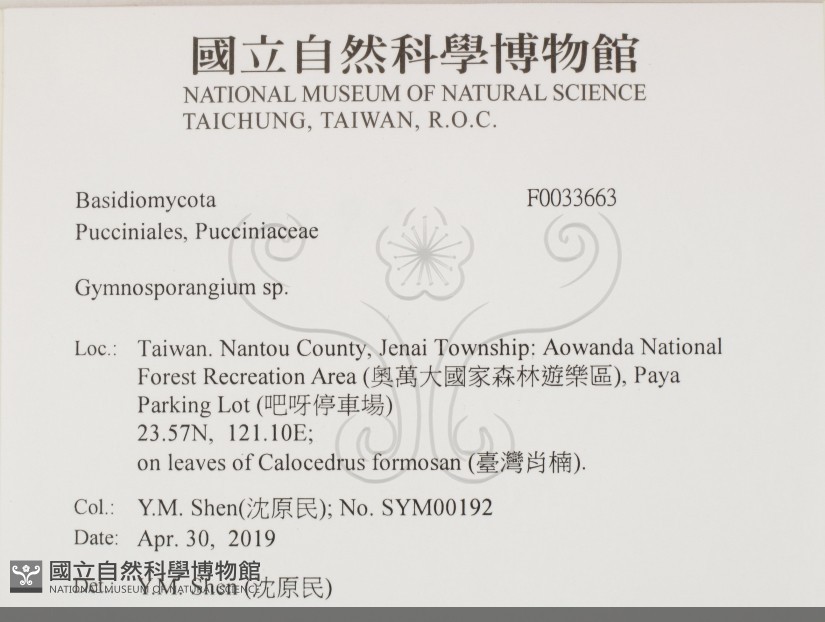 on leaves of Calocedrus formosana.