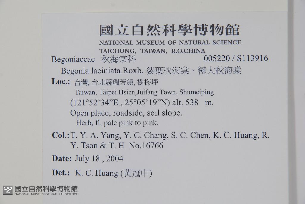 Scientific Name: Begonia laciniata Roxb.