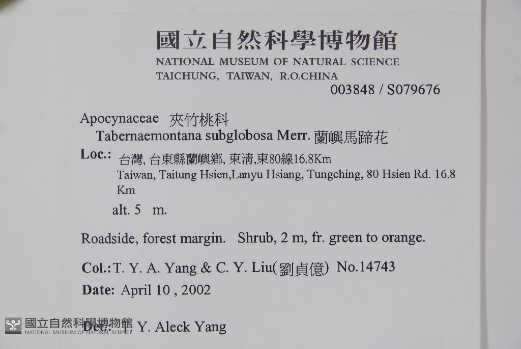Collector:T. Y. A. Yang & C. Y. Liu(劉貞億)