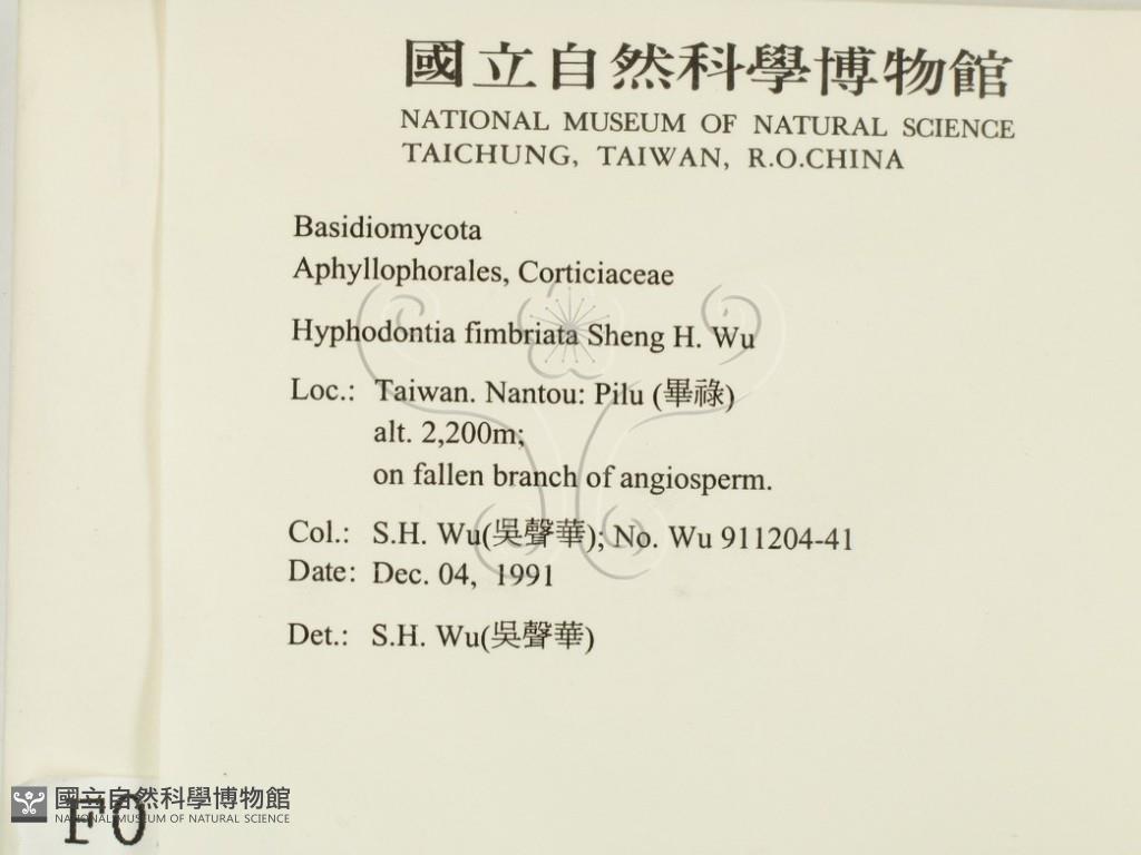 Hyphodontia fimbriata Sheng H. Wu