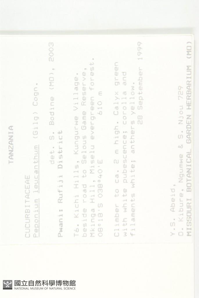 Scientific Name: Peponium leucanthum Cogn.