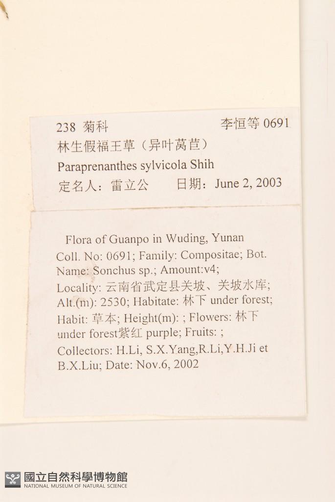 Scientific Name: Paraprenanthes sylvicola C. Shih