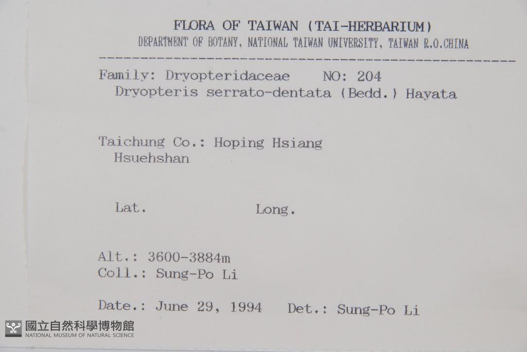 Scientific Name: Dryopteris serrato-dentata (Beddome) Hayata