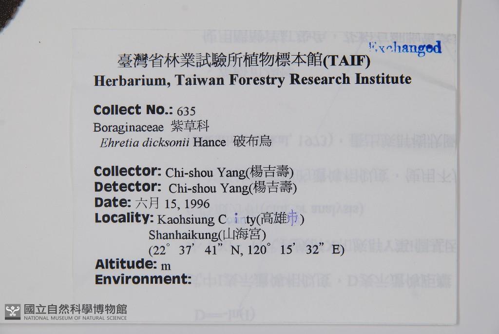 Scientific Name: Ehretia dicksonii Hance