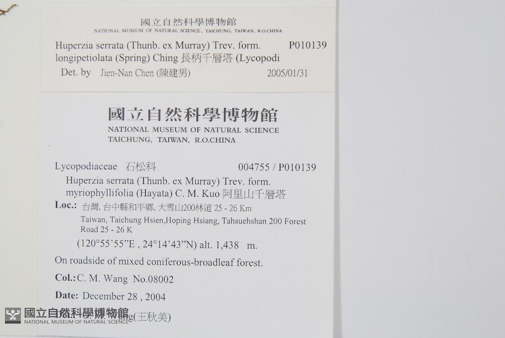 Scientific Name: Huperzia serrata (Thunb.) Trevis. var. longipetiolata (Spring) H.M.Chang