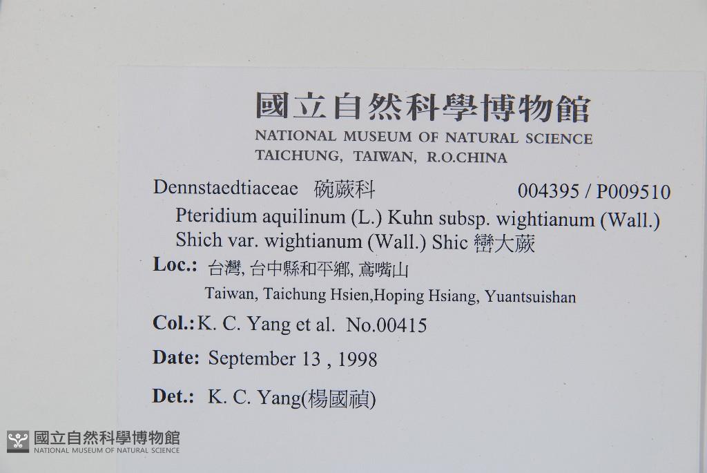 Scientific Name: Pteridium aquilinum (L.) Kuhn subsp. wightianum (Wall.) Shieh