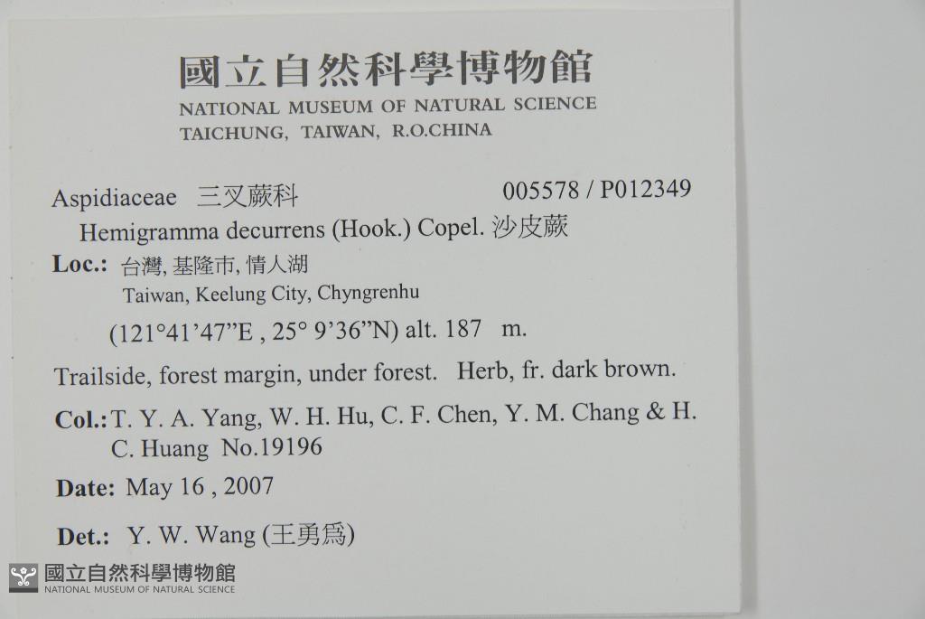 Collector:T. Y. A. Yang, W. H. Hu, C. F. Chen, Y. M. Chang & H. C. Huang