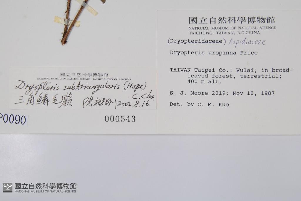 Scientific Name: Dryopteris subtriangularis (Hope) C. Chr.