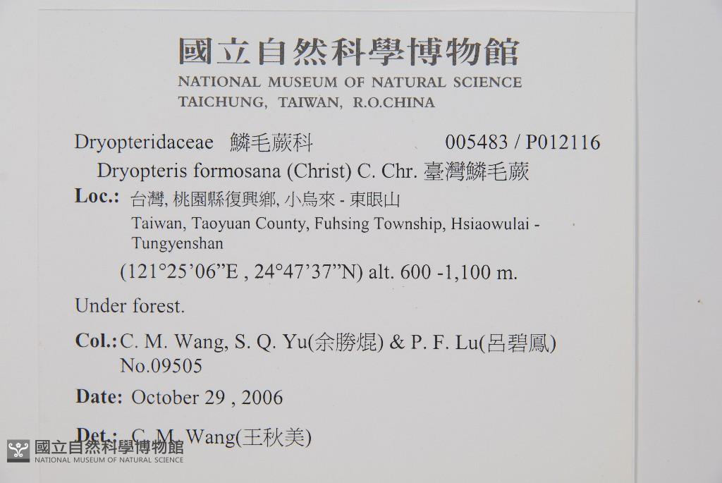 Collector:C. M. Wang, S. Q. Yu(余勝焜) & P. F. Lu(呂碧鳳)
