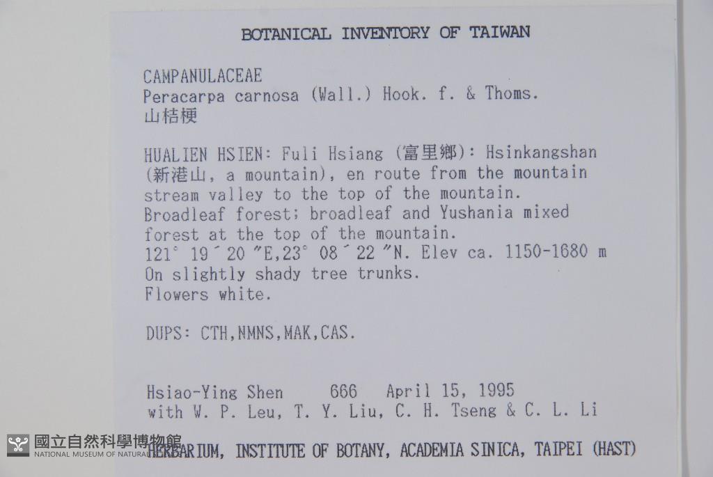 Collector:H. Y. Shen, W. P. Leu, T. Y. Liu, C. H. Tseng & C. L. Li