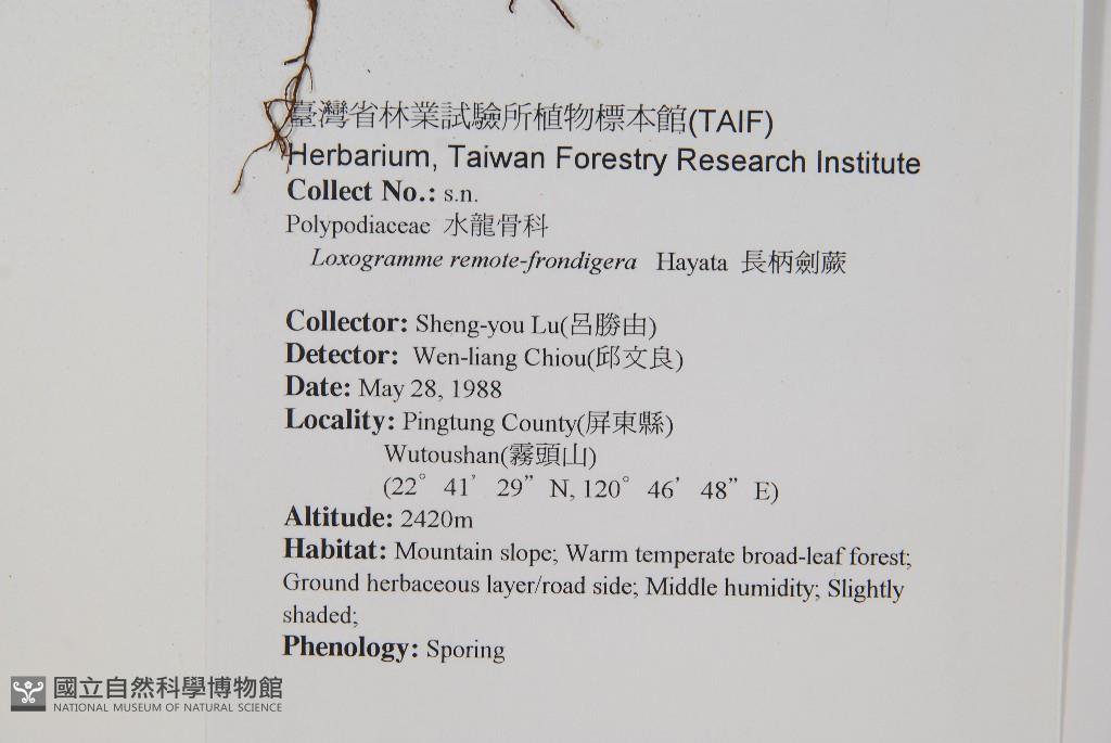 Scientific Name: Loxogramme remote-frondigera Hayata