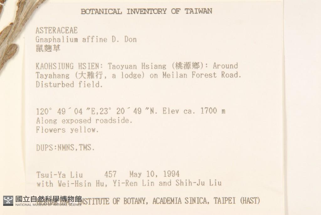 Collector:T. Y. Liu, W. H. Hu, Y. R. Lin & S. J. Liu