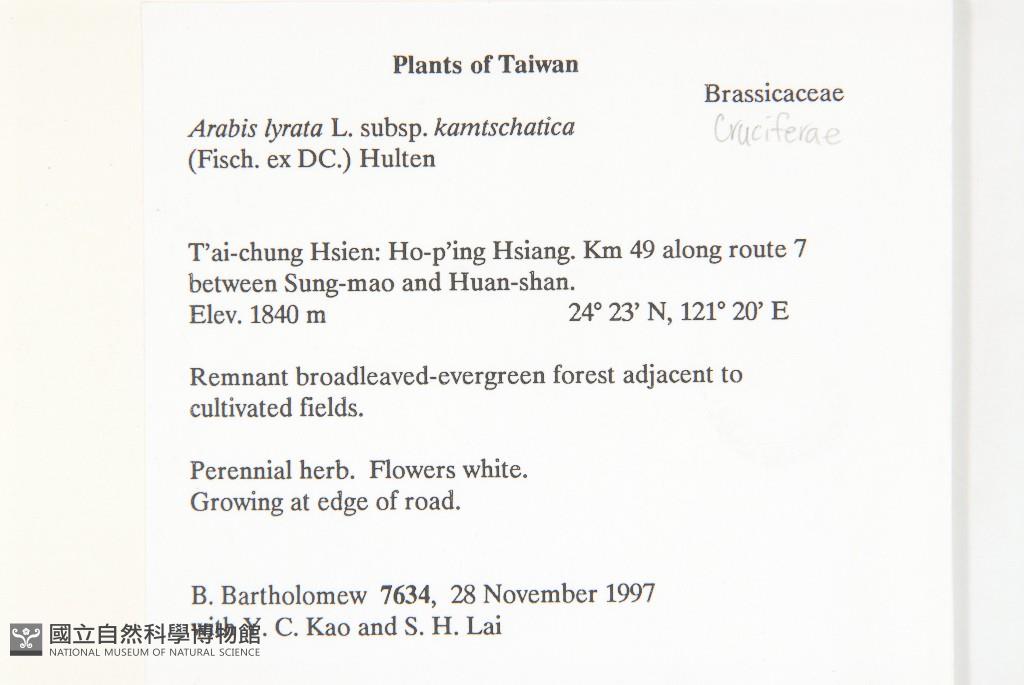 Collector:B. Bartholomew, Y. C. Kao & S. H. Lai