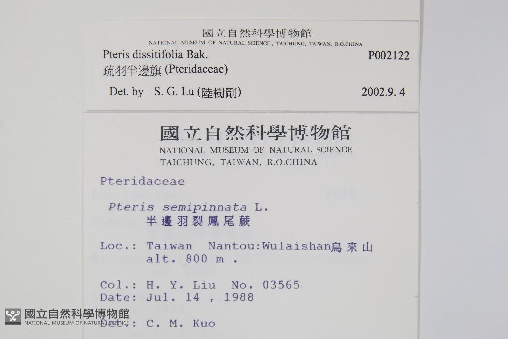 Scientific Name: Pteris dissitifolia Bak.