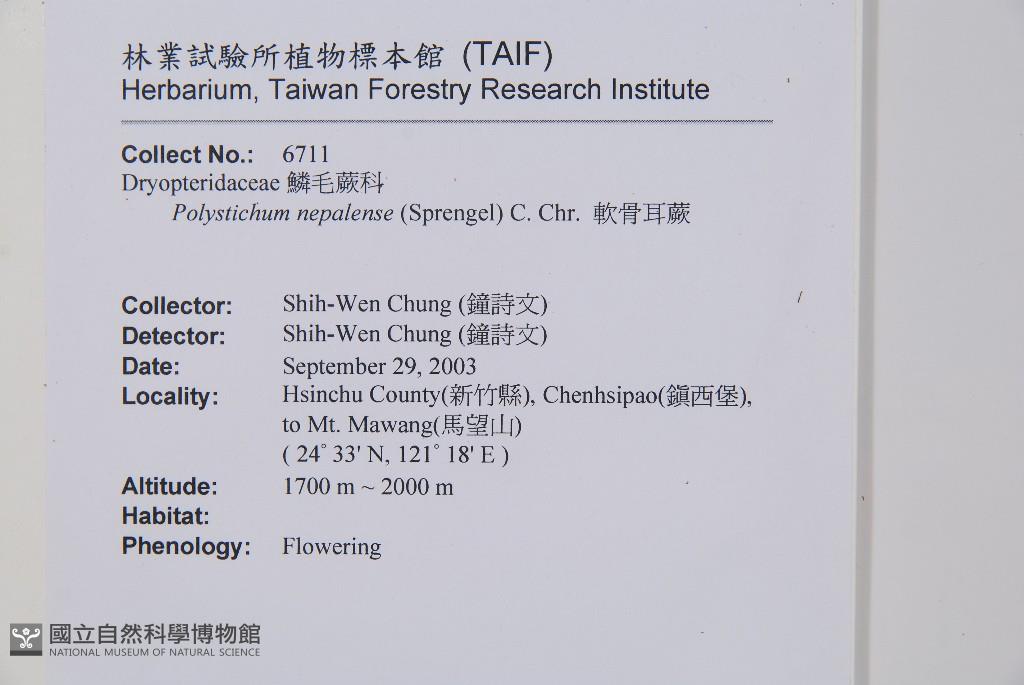Scientific Name: Polystichum nepalense (Spreng.) C. Chr.