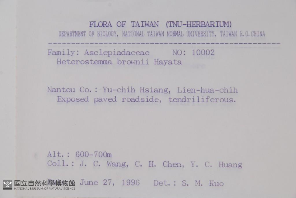Collector:Jenn-Che Wang (王震哲), Chih-Hsiung Chen (陳志雄), & Y. C. Huang