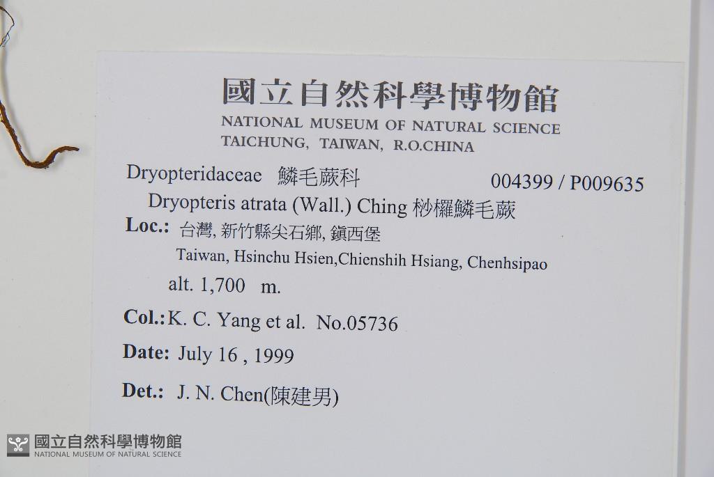 Scientific Name: Dryopteris atrata (Wall.) Ching