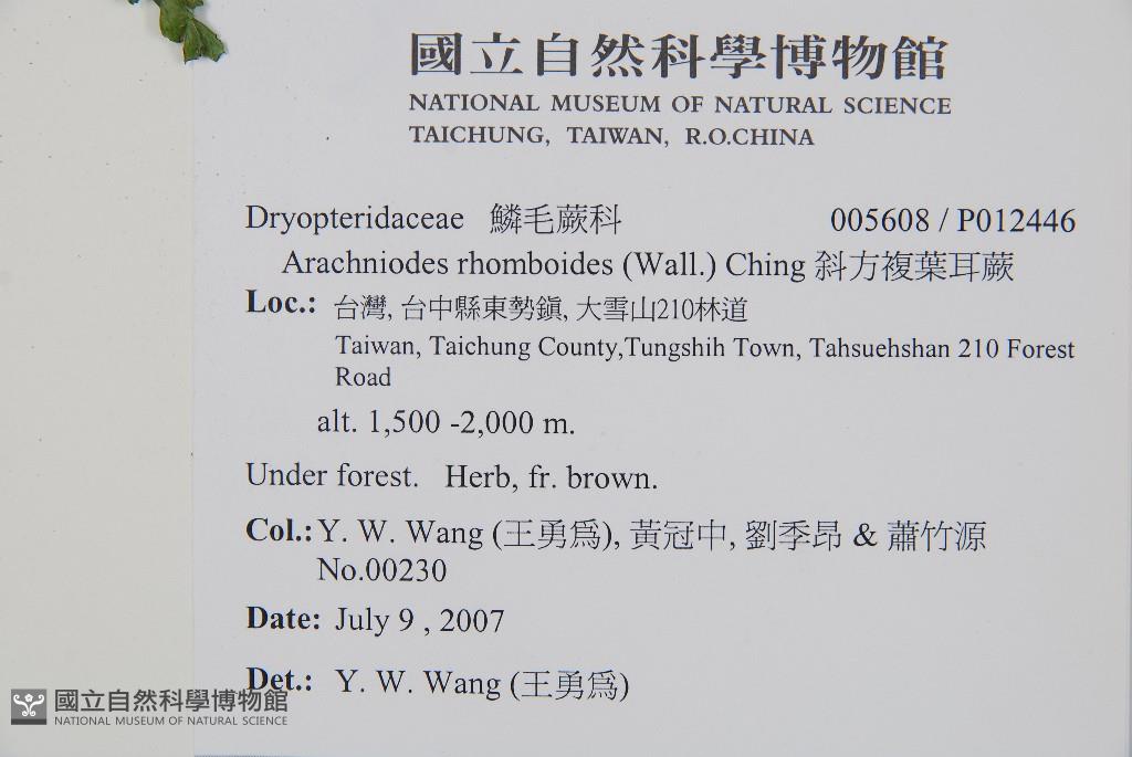 Collector:Y. W. Wang (王勇為), 黃冠中, 劉季昂 & 蕭竹源