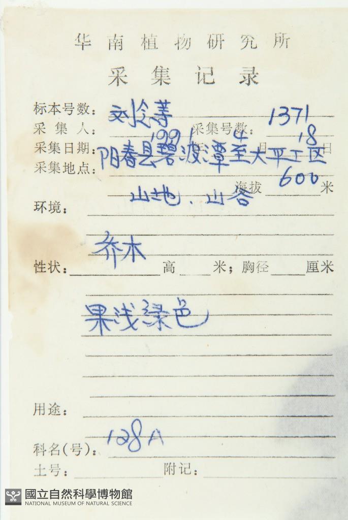 Collector's No.:劉?1371