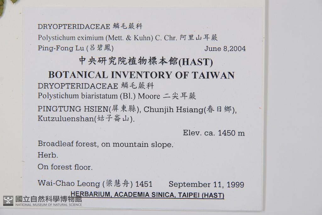 Scientific Name: Polystichum eximium (Mett. ex Kuhn) C. Chr.