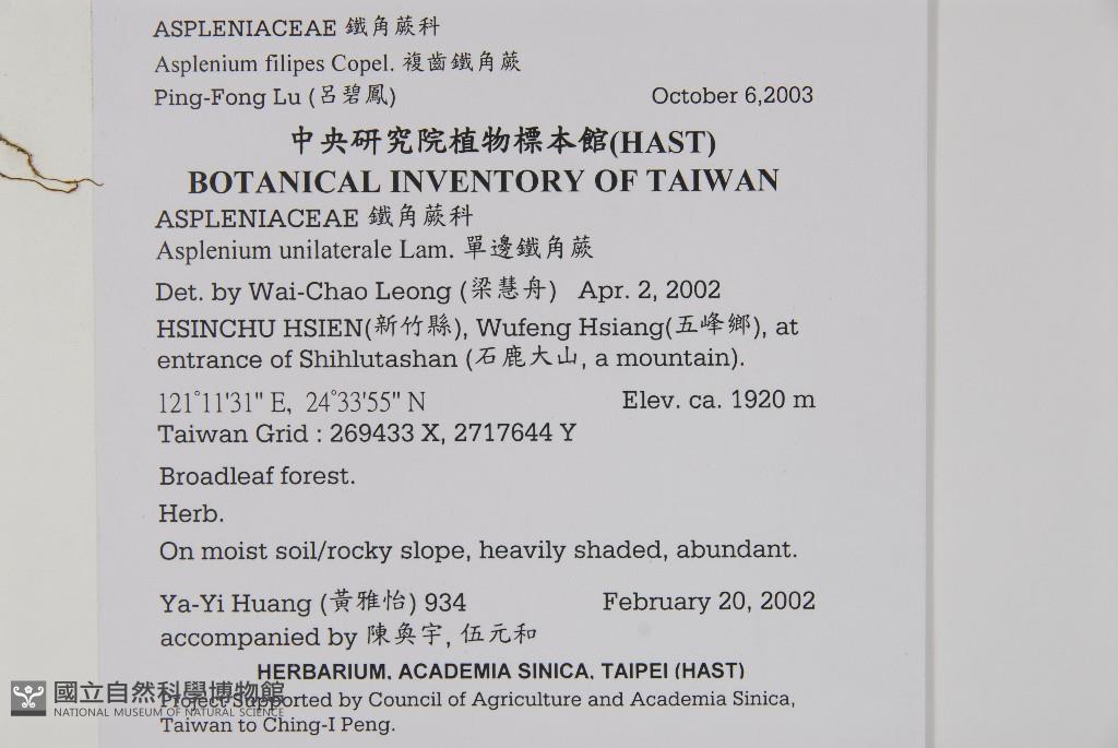 Scientific Name: Asplenium filipes Copel.