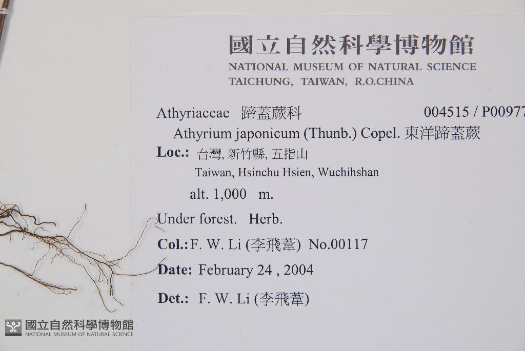 Scientific Name: Athyrium japonicum (Thunb.) Copel.