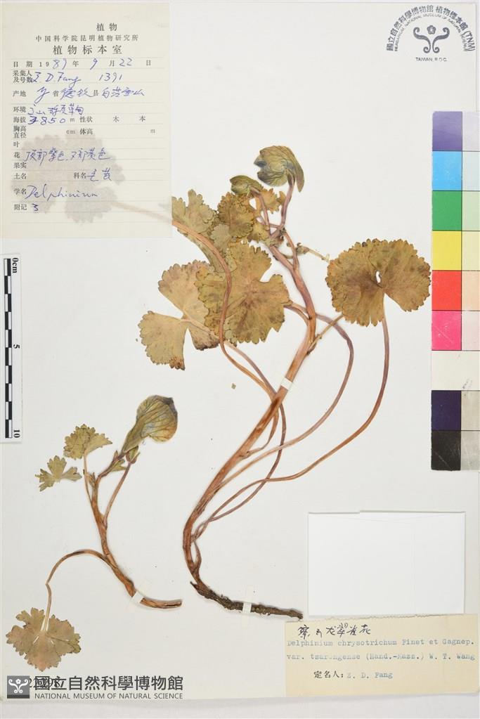 Scientific Name: Delphinium chrysotrichum Finet & Gagnep. var. tsarongense (Hand.-Mazz.) W. T. Wang
