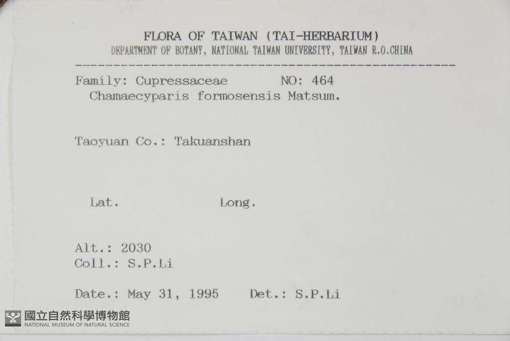 Scientific Name: Chamaecyparis formosensis Matsum.