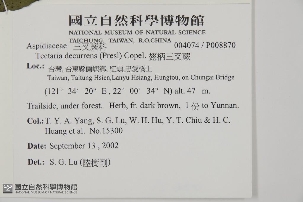Scientific Name: Tectaria decurrens (Presl) Copel.