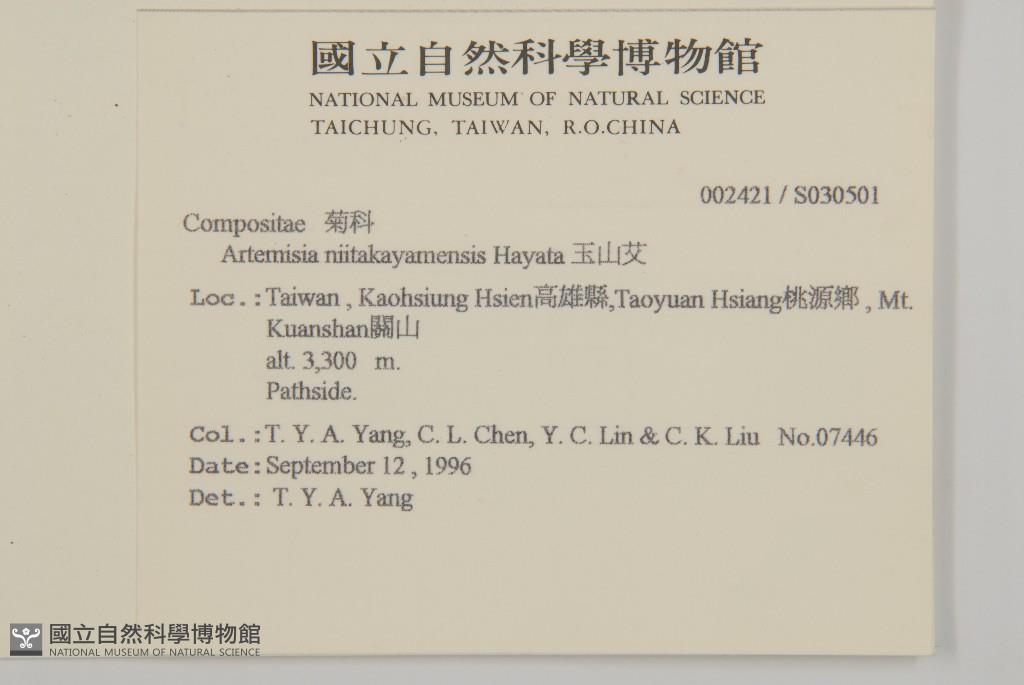 Collector:T. Y. A. Yang, C. L. Chen, Y. C. Lin & C. K. Liu
