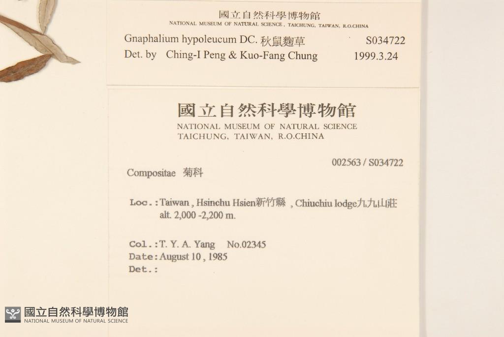 Scientific Name: Gnaphalium hypoleucum DC.