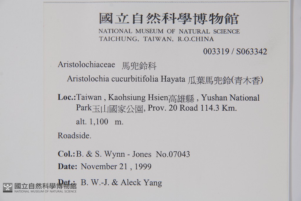 Scientific Name: Aristolochia cucurbitifolia Hayata