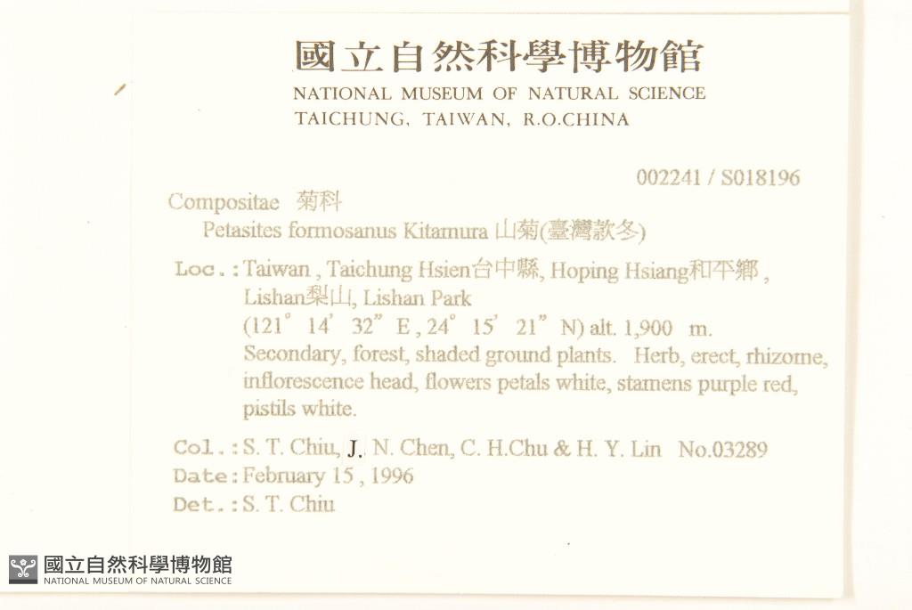 Collector:Shau-Ting Chiu (邱少婷), Jien-Nan Chen (陳建男), Che-Huei Chu (朱哲輝) & al.