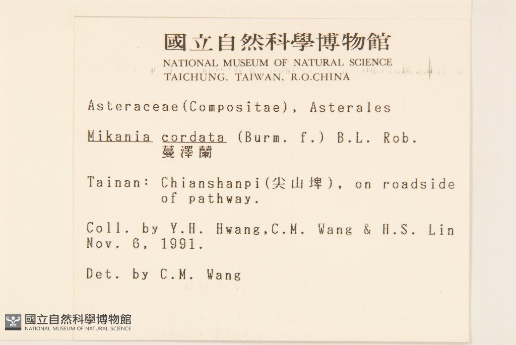 Collector:Yee-Hsiung Hwang (黃義雄), Chiu-Mei Wang (王秋美), & Hann-Song Lin (林漢松)
