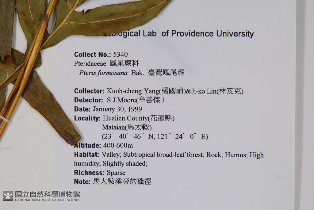 Scientific Name: Pteris formosana Bak.