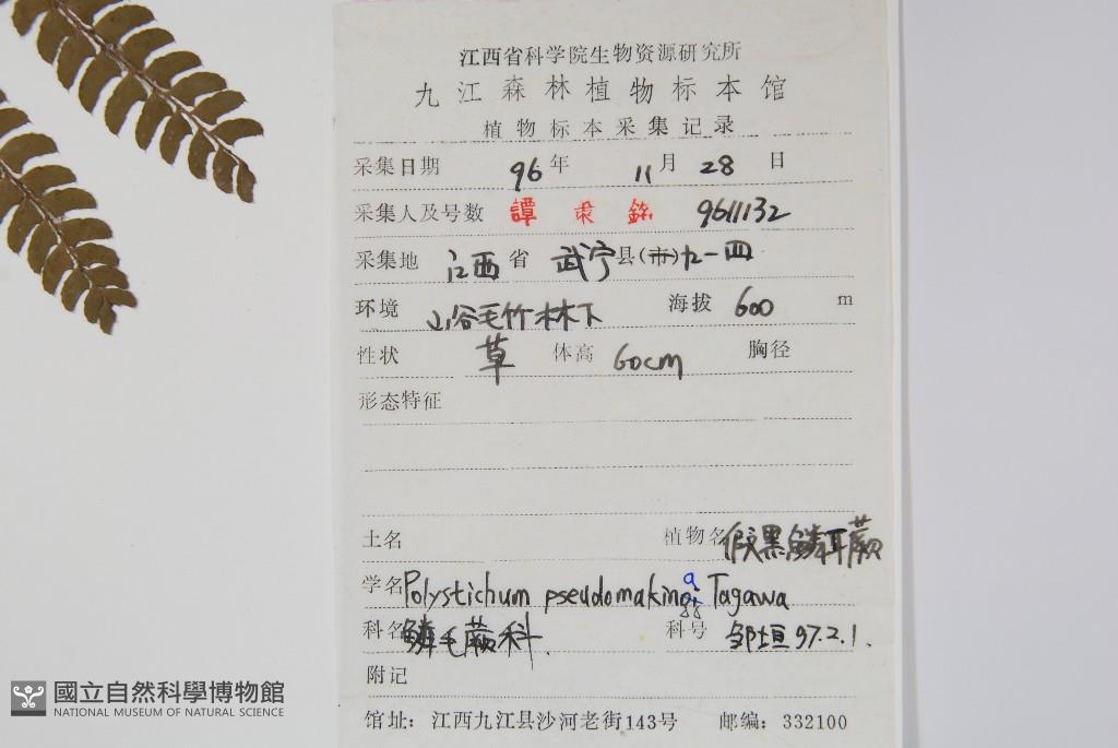 Scientific Name: Polystichum pseudomakina Tagawa