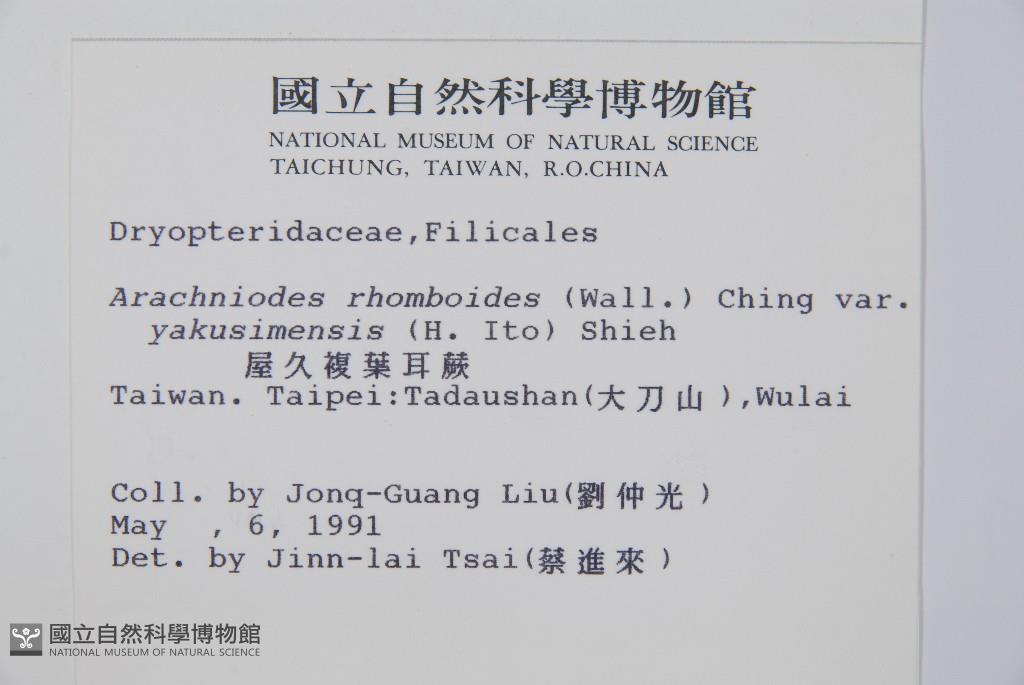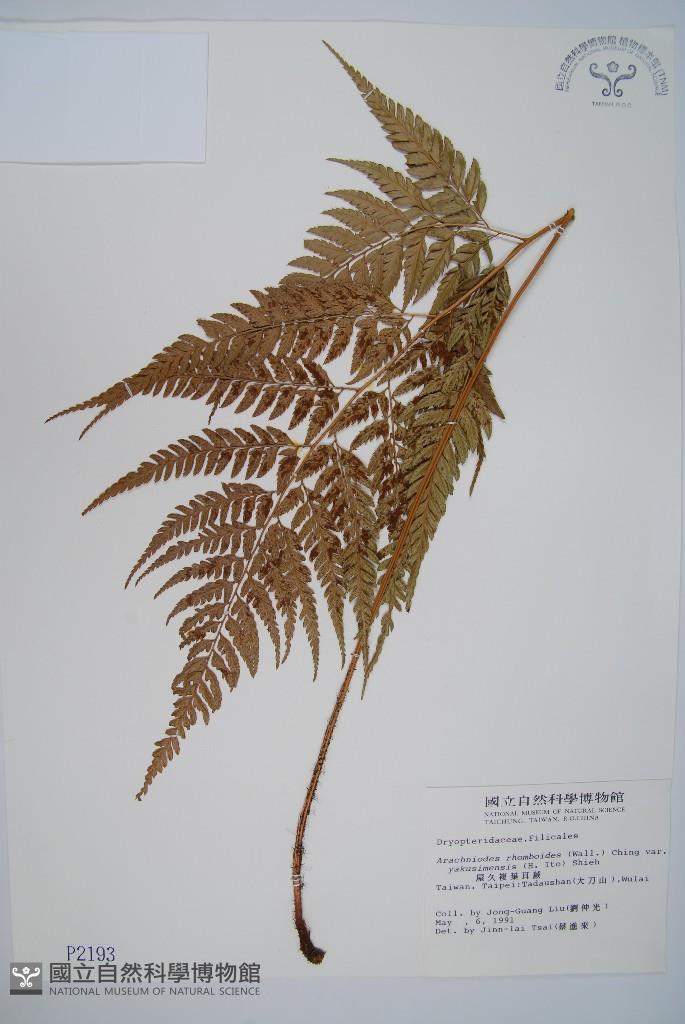 Scientific Name: Arachniodes pseudo-aristata (Tagawa) Ohwi