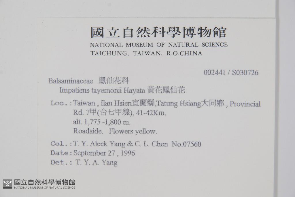 Scientific Name: Impatiens tayemonii Hayata